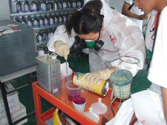 老師們進(jìn)行調(diào)漆練習(xí)