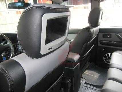 前排頭枕,兩個(gè)顯示器,完全為后排乘客而備! 全部用進(jìn)口真纖包裹,不管是耐用性還是耐磨性,我們所用的這個(gè)真纖都超過5星真皮,當(dāng)然價(jià)格也貴過5星真皮