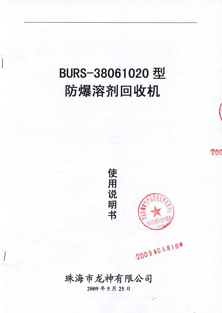 防爆認證 防爆溶劑回收機防爆合格證 BURS系列防爆溶劑回收機技術(shù)條件 BURS-38061020型防爆溶劑回收機 使用說明書 BURS-38061020型防爆溶劑回收機 圖紙資料 (以上圖片均可點擊放大) 2012-11-27 34812