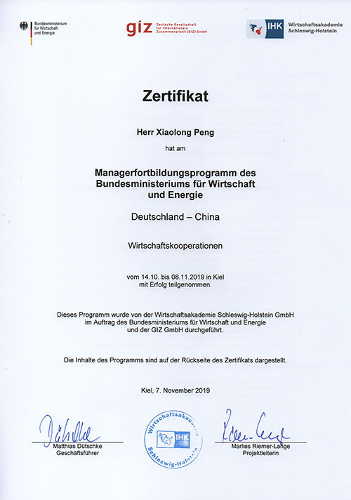 彭小龍總經(jīng)理證書 | |