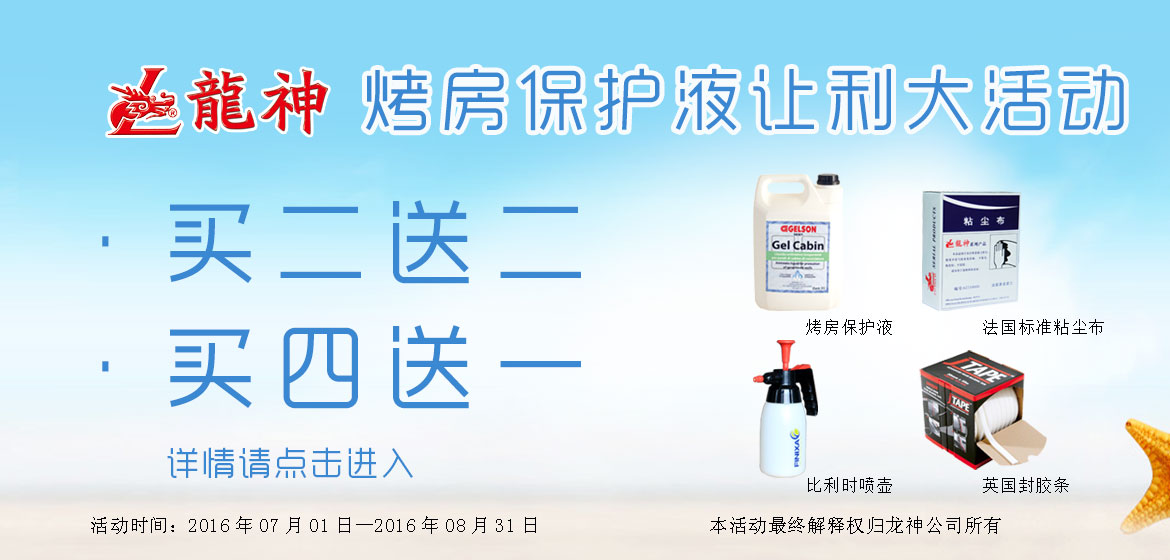意大利烤房保護液讓利大活動 2016-06-24 11015 “熱夏、清涼、給力”意大利烤房保護液讓利大活動。買2罐,送法國“GekateX”標(biāo)準(zhǔn)粘塵布2盒;買4罐,送英國封膠條(1卷)或比利時噴壺(1個)。