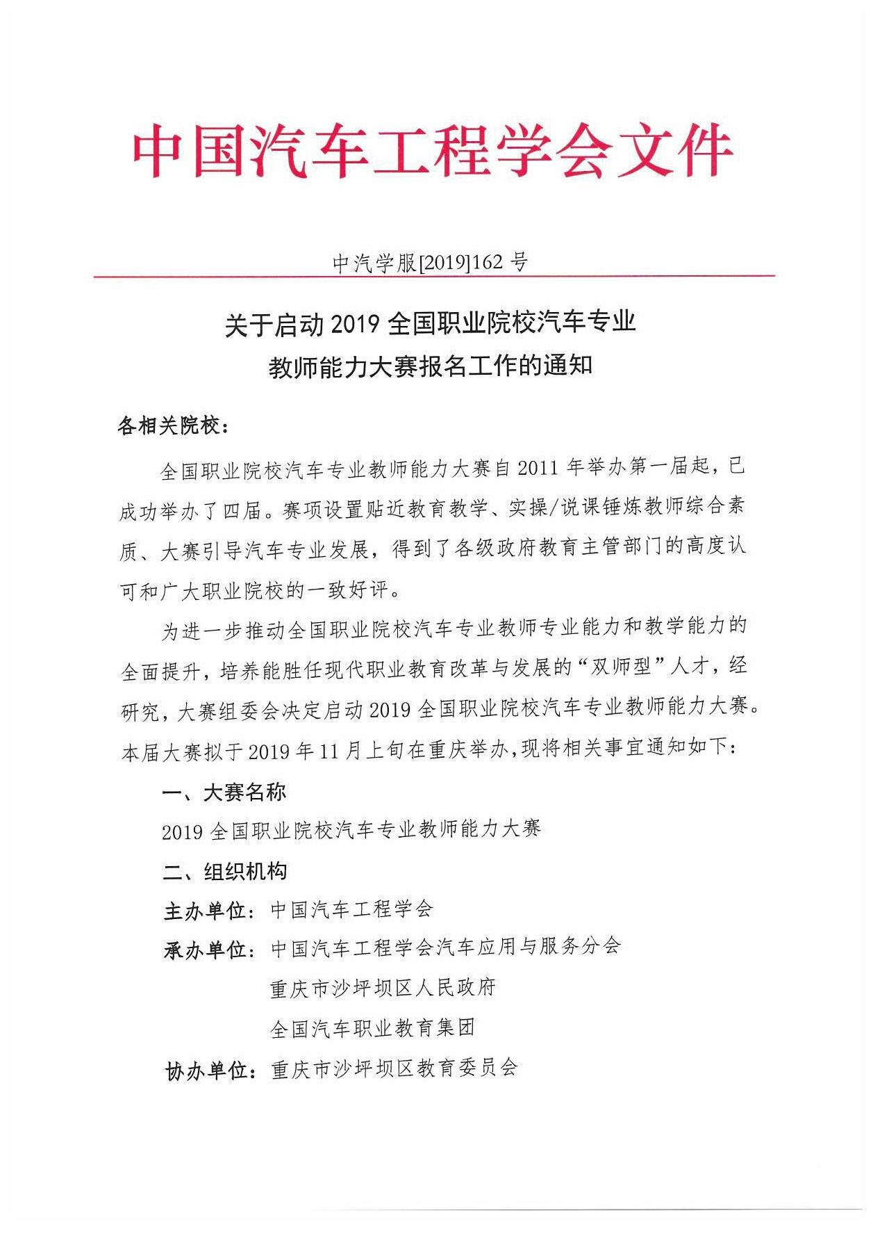 2019全國職業(yè)院校汽車專業(yè)教師能力大賽-鈑金賽項(xiàng)報(bào)名進(jìn)行時(shí) 2019-09-12 7267 由中國汽車工程學(xué)會主辦,中國汽車工程學(xué)會汽車應(yīng)用與服務(wù)分會、重慶市沙坪壩區(qū)人民政府、全國汽車職業(yè)教育集團(tuán)承辦,珠海市龍神有限公司協(xié)辦的“2019年全國職業(yè)院校汽車專業(yè)教師能力大賽--鈑金維修賽項(xiàng)”報(bào)名工作開始了。。。