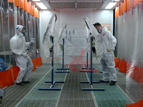 參賽選手統(tǒng)一著裝龍神贊助的噴漆防護(hù)進(jìn)行規(guī)范化的車身噴涂比賽
