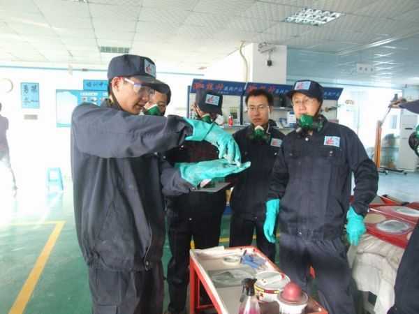 老師們正在進(jìn)行調(diào)漆